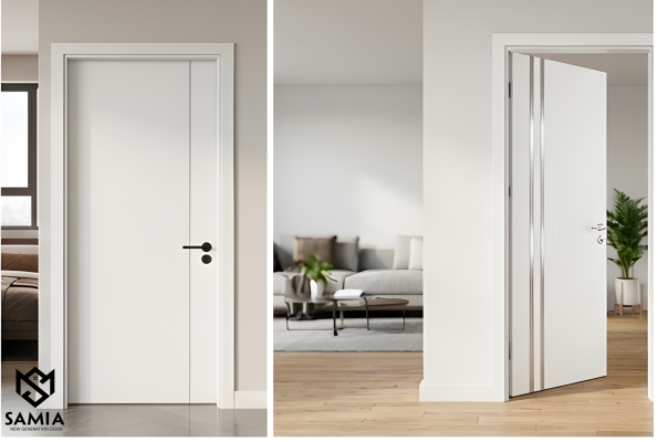 - Cửa nhựa composite sơn PU/phẳng/CNC (Mô hình SYA, LX): Với mức giá từ 3.300.000đ – 3.950.000đ/bộ, dòng cửa này mang lại sự đa dạng về màu sắc nhờ lớp sơn PU bền đẹp. Các tùy chọn phẳng hoặc được cắt khắc CNC sẽ tăng thêm vẻ đẹp tinh tế và cá nhân hóa cho không gian.