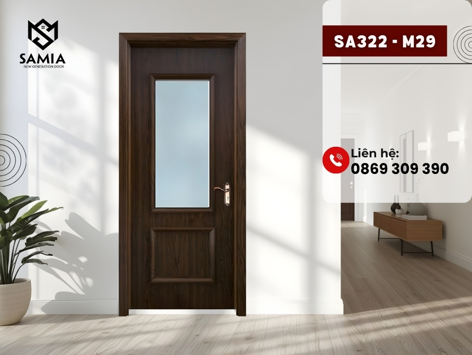 Nâng tầm không gian với cửa composite SA322 M29. Thiết kế độc đáo gồm ô kính lấy sáng và ô chớp tăng riêng tư, đảm bảo độ bền, cách nhiệt, cách âm hiệu quả cho ngôi nhà bạn.