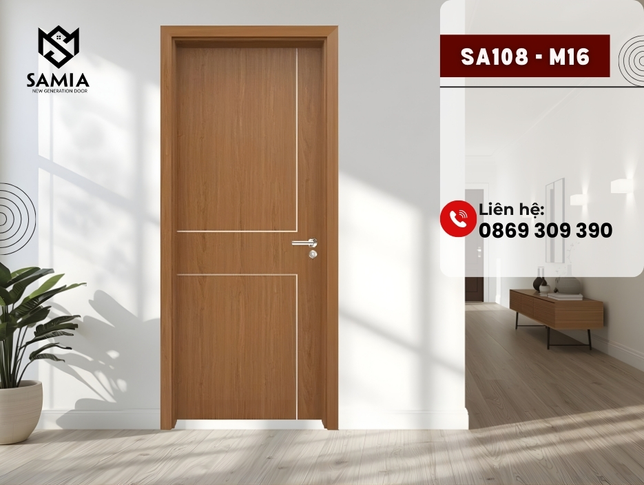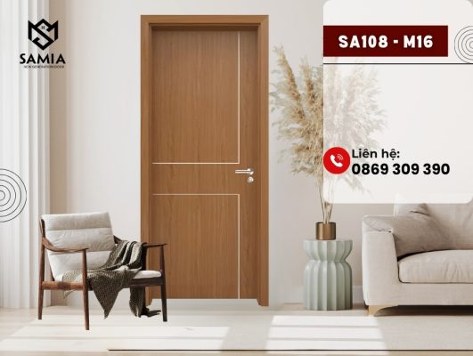 - Thiết kế đa dạng, thẩm mỹ cao: Các mẫu cửa “chỉ trang trí” như Cửa composite chỉ trang trí mã sp SA108 – M16 thường được chú trọng về mặt thiết kế. Chúng có thể có bề mặt vân gỗ tự nhiên, màu sắc hiện đại, hoặc các họa tiết trang trí tinh xảo, phù hợp với nhiều phong cách nội thất từ cổ điển đến hiện đại. Đặc biệt, việc sử dụng các “chỉ trang trí” (lam ngang, lam đứng, phào chỉ) giúp tạo điểm nhấn, mang lại vẻ đẹp sang trọng và độc đáo cho cánh cửa.